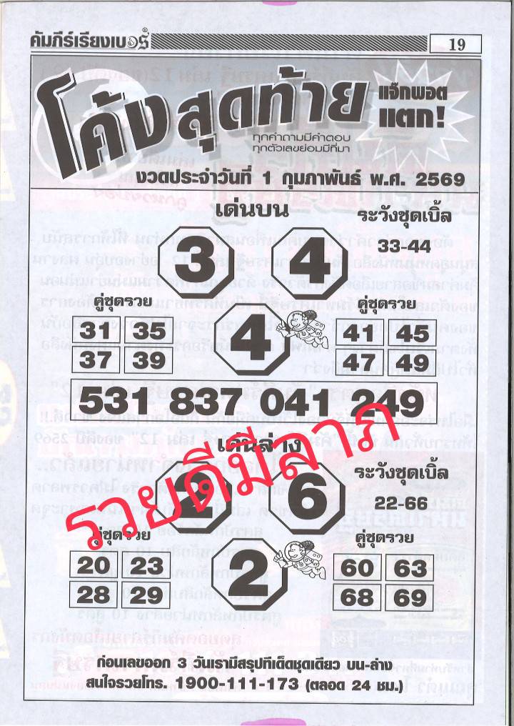 หวยโค้งสุดท้าย 1/2/1569